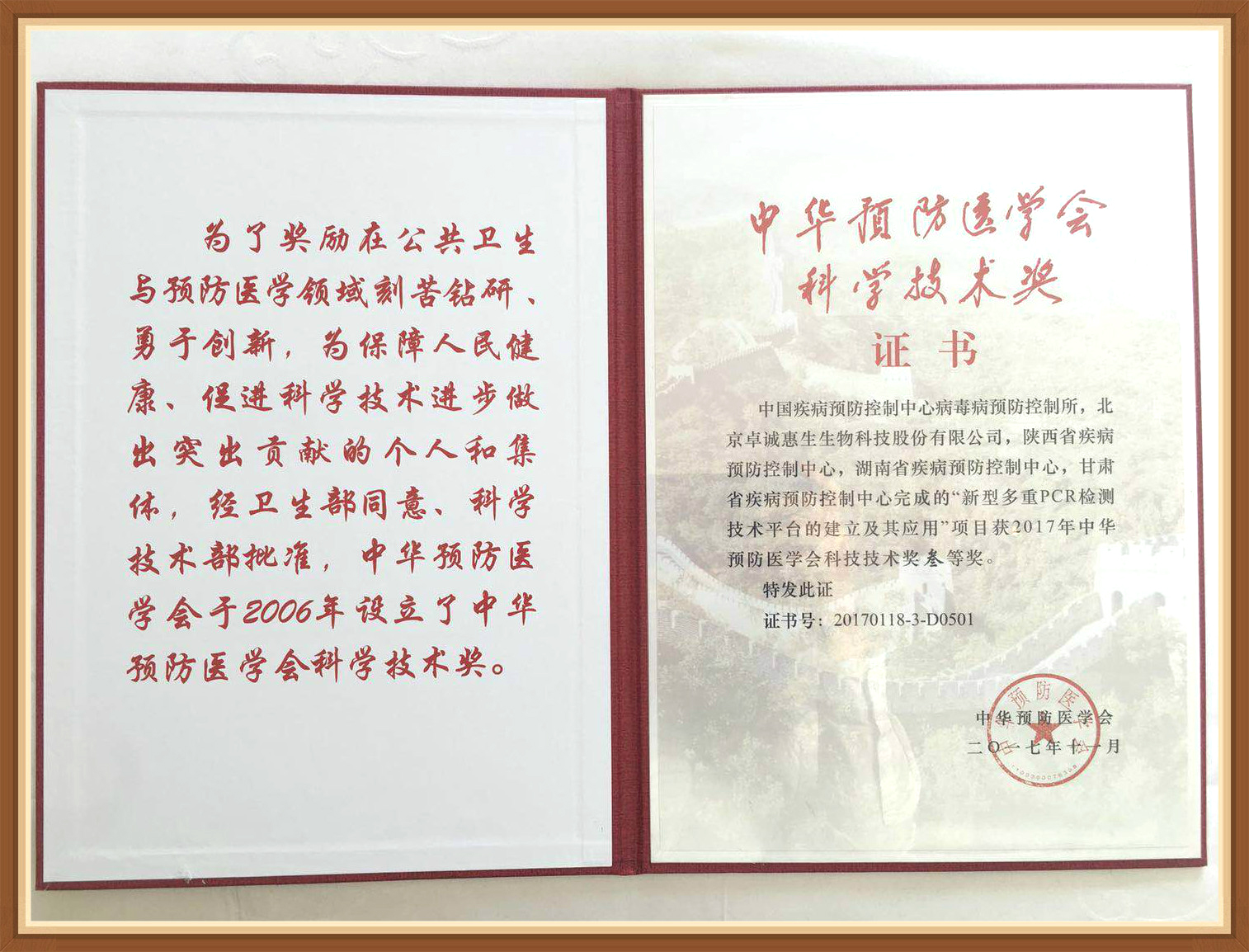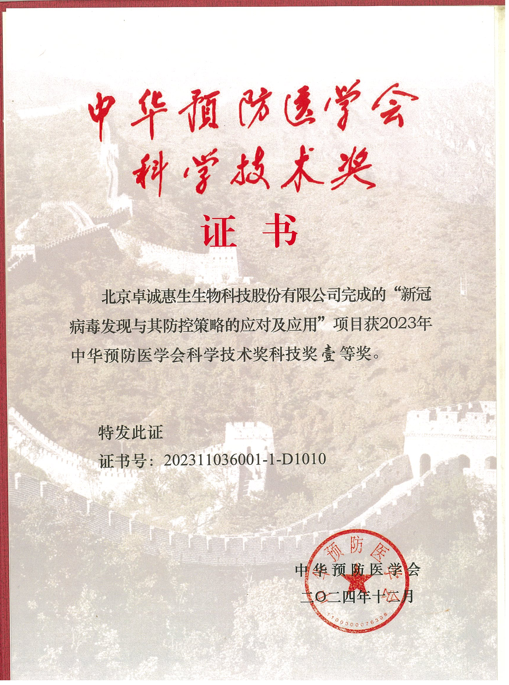 - 中華預防醫學會科學技術獎一等獎