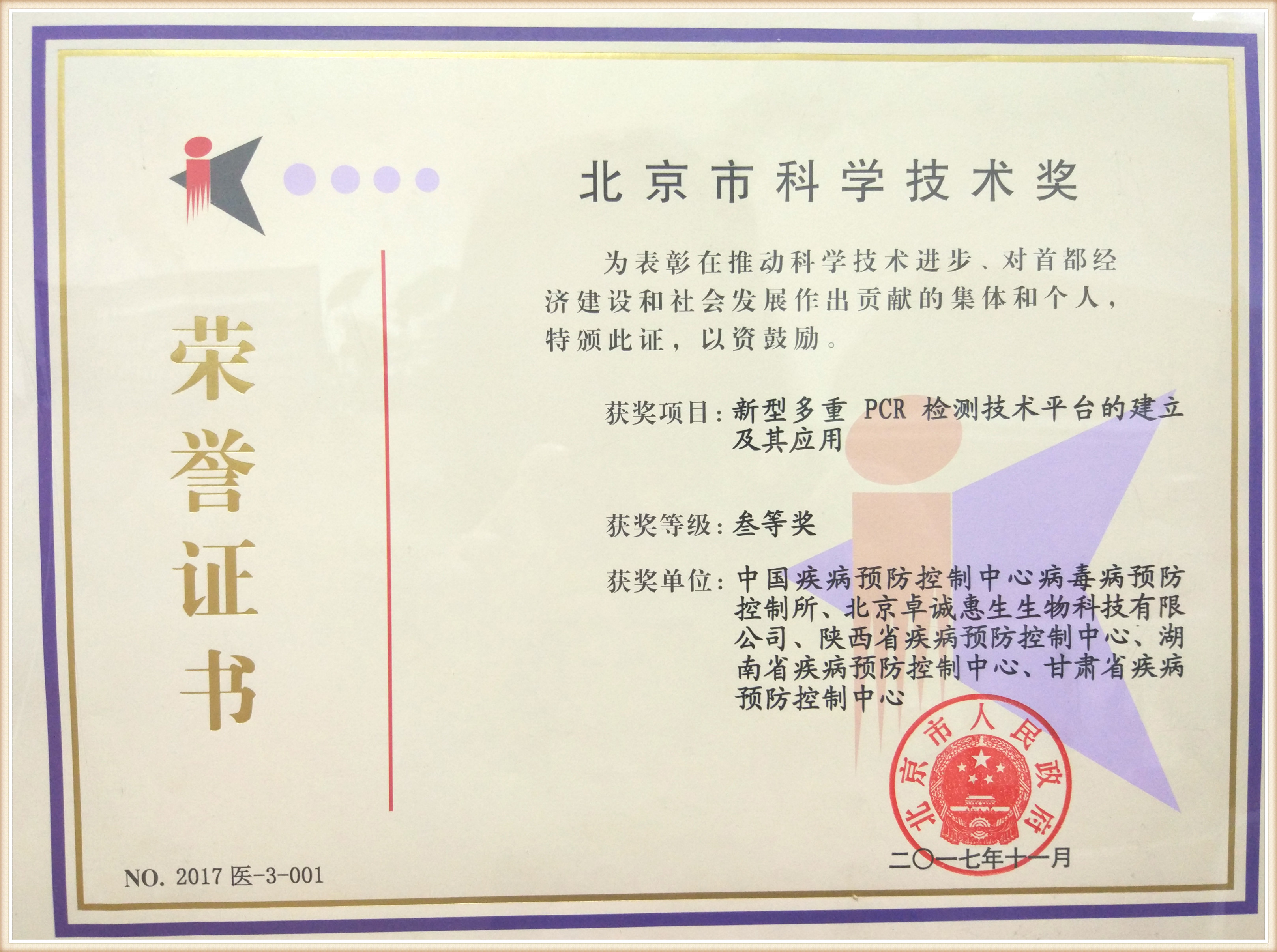 - 北京市科學技術獎叁等獎